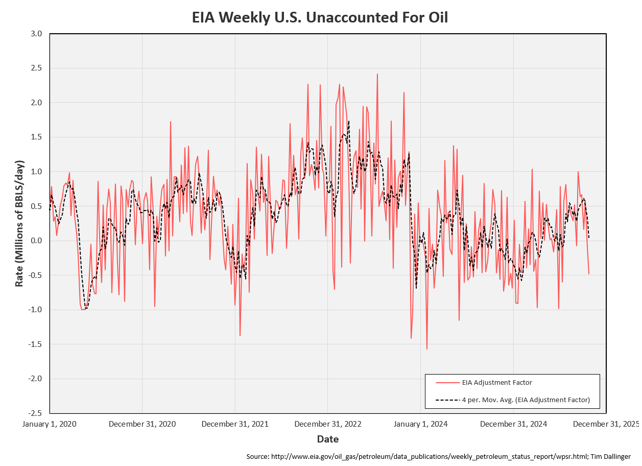Unaccounted for crude falls further into negative territory.