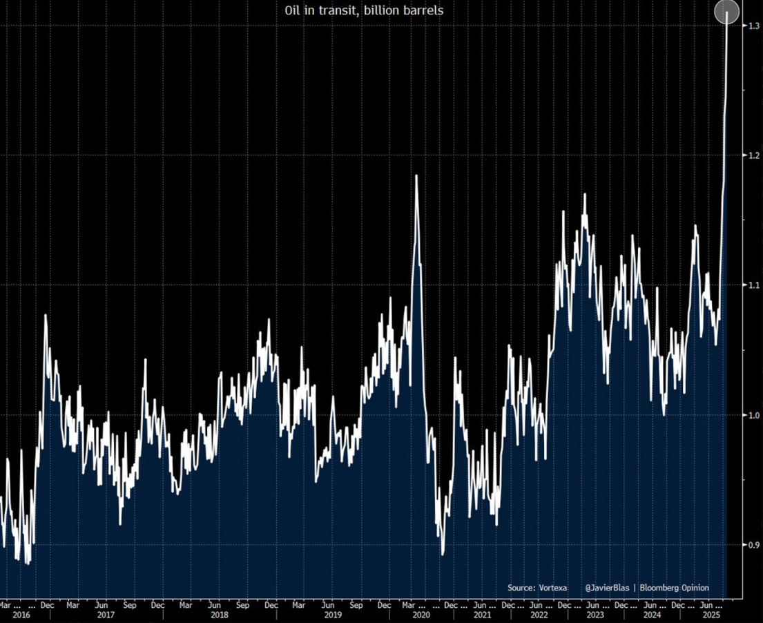 Russian crude is being rerouted in an attempt avoid sanctions. With persistent drone attacks on the Russian refinery complex, Russian crude must be exported or shut-in.